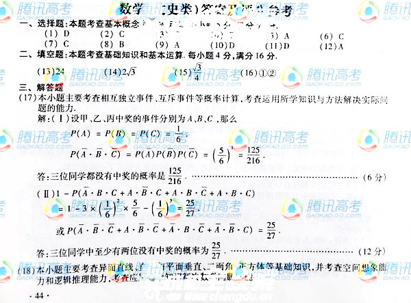 [组图]2010年四川高考文科数学试题答案