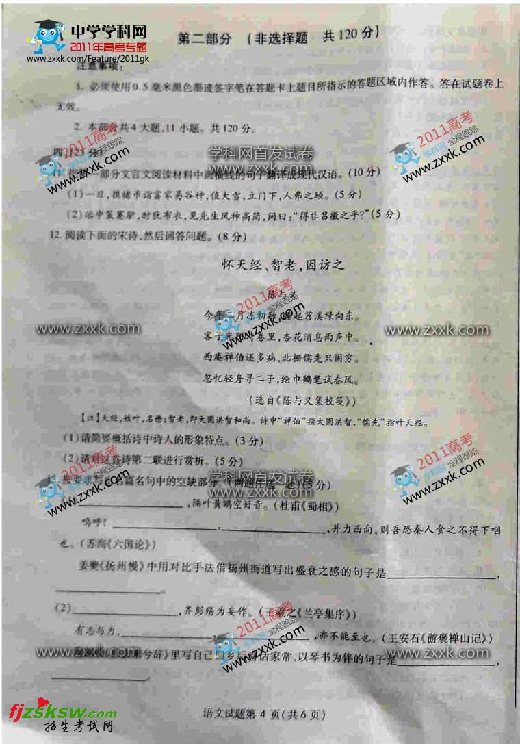 [组图]2011年普通高等学校四川省语文卷