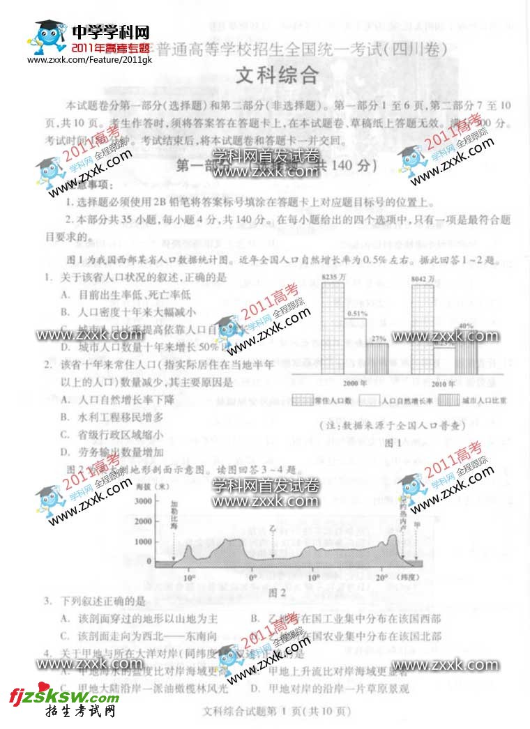 [组图]2011年普通高等学校四川省文综卷