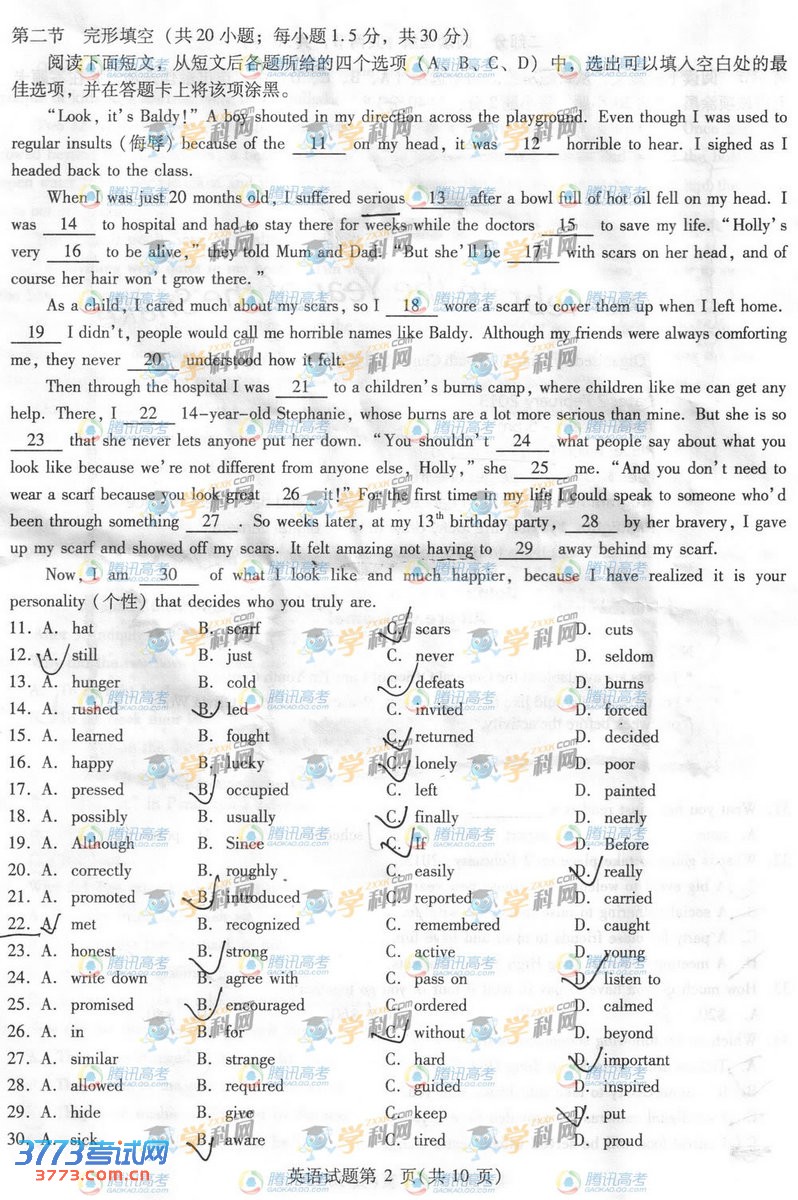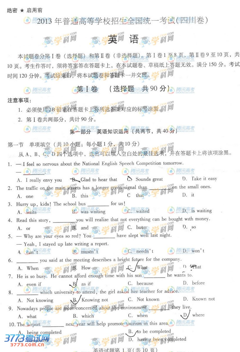 [组图]2013四川高考英语试题及答案参考
