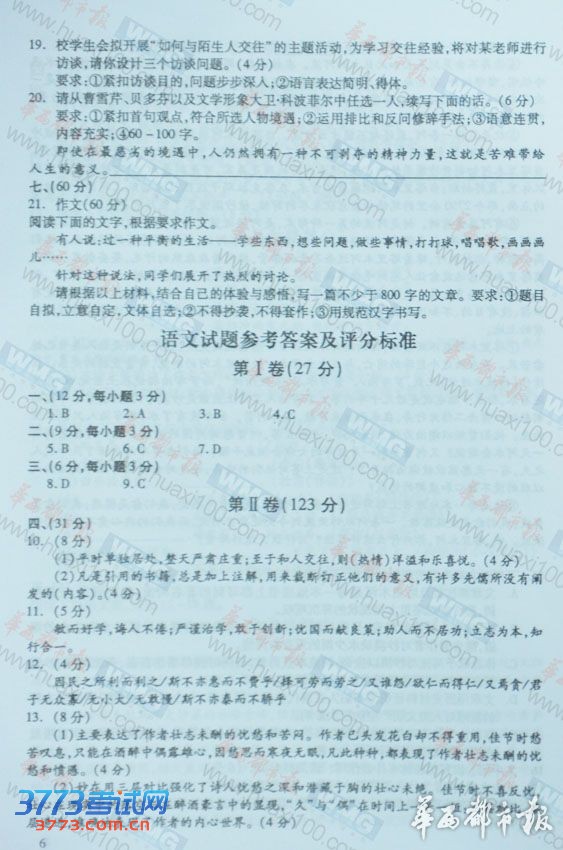 [组图]2013四川高考语文试题及答案发布