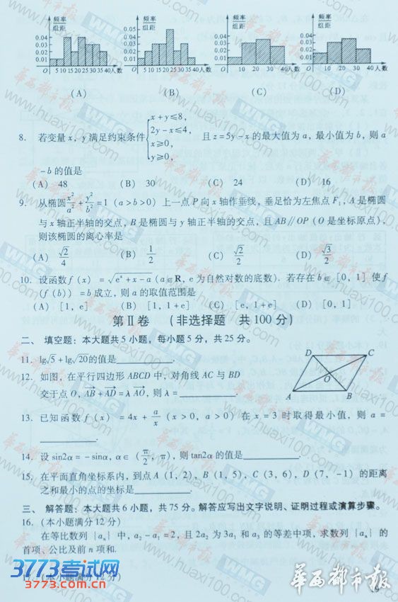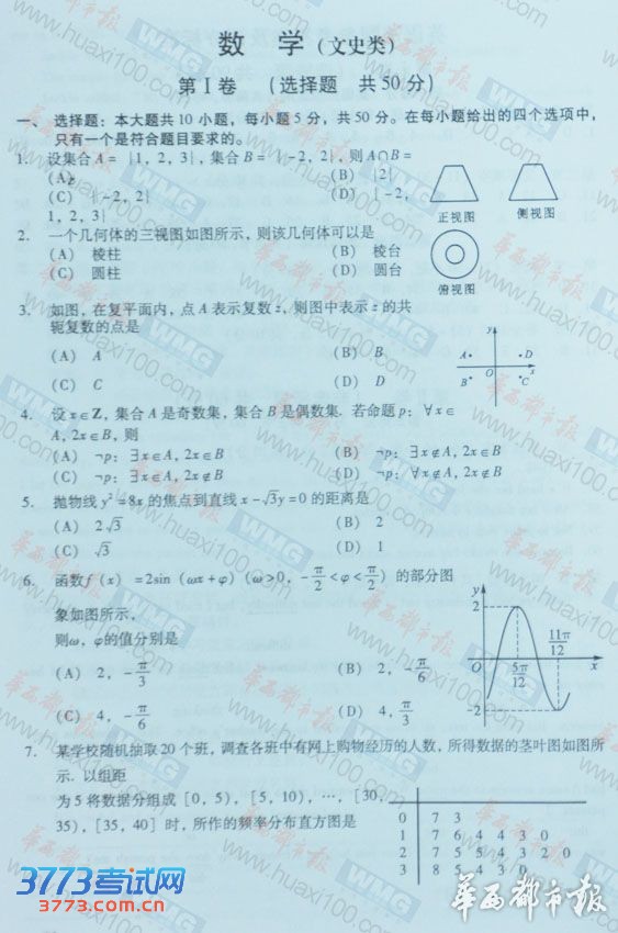 [组图]2013四川高考数学文科试题及答案发布