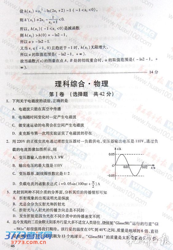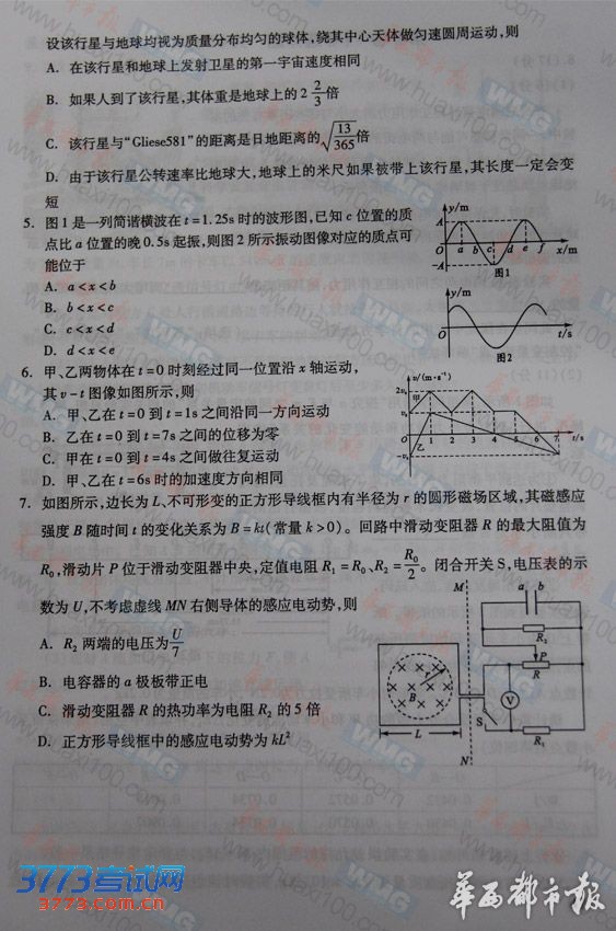 [组图]2013四川高考理综试题及答案