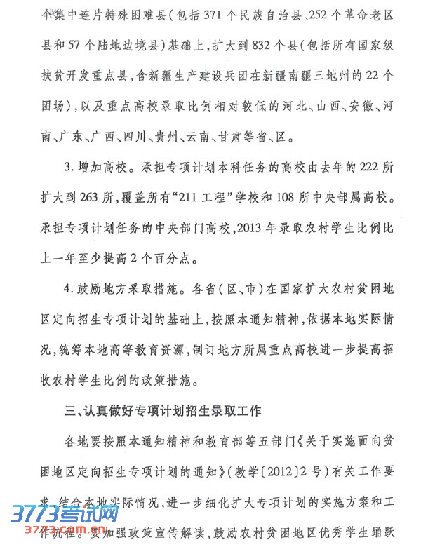 附件:1.教育部关于2013年扩大实施农村贫困地区定向
