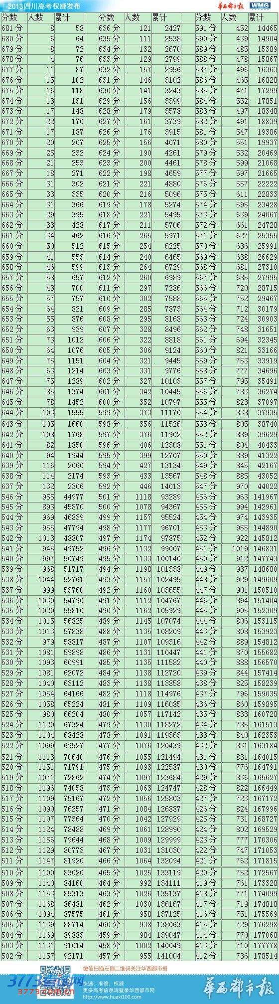 四川省2013年普通高考分数段公布。华西都市报记者 肖迪