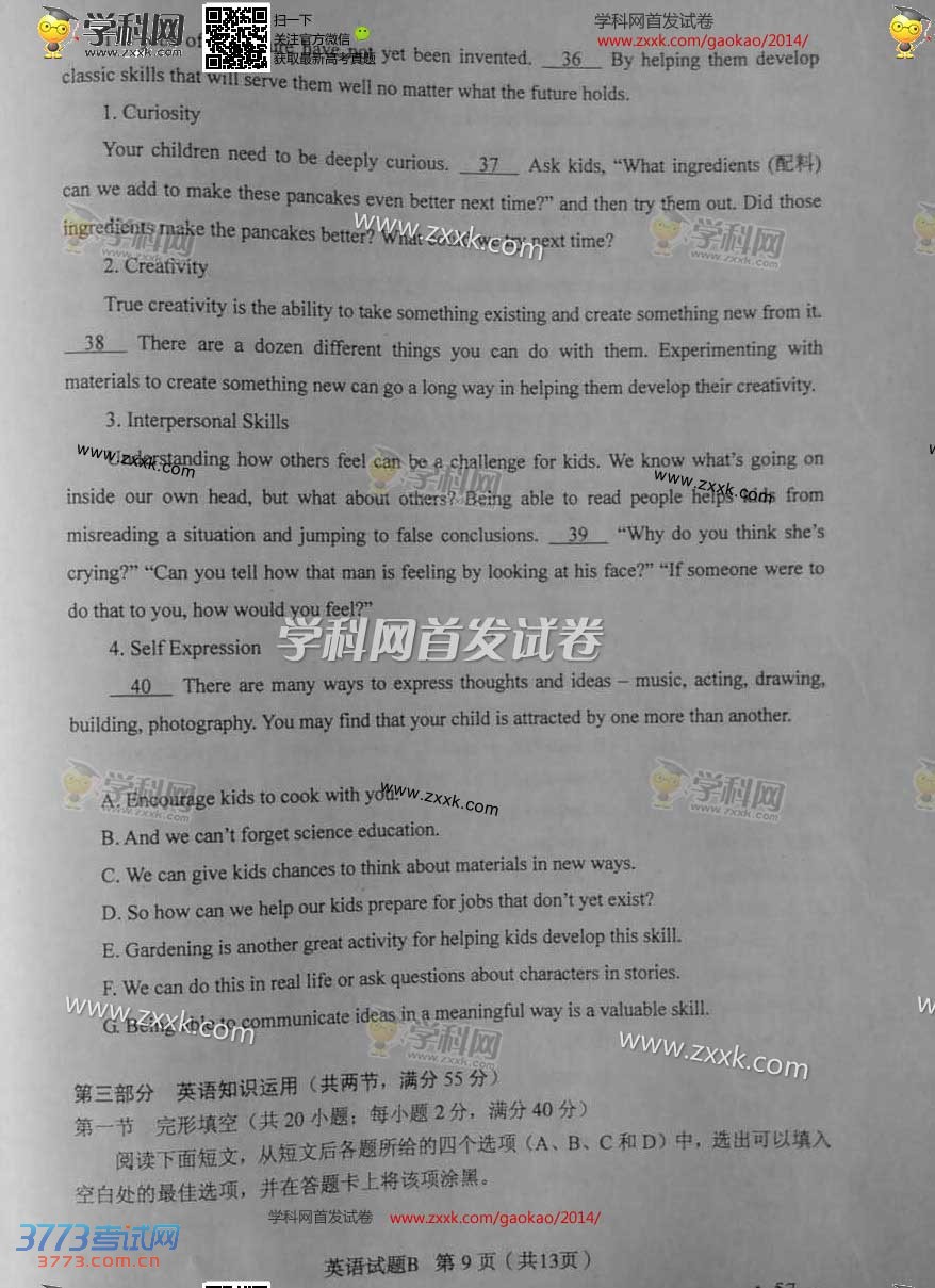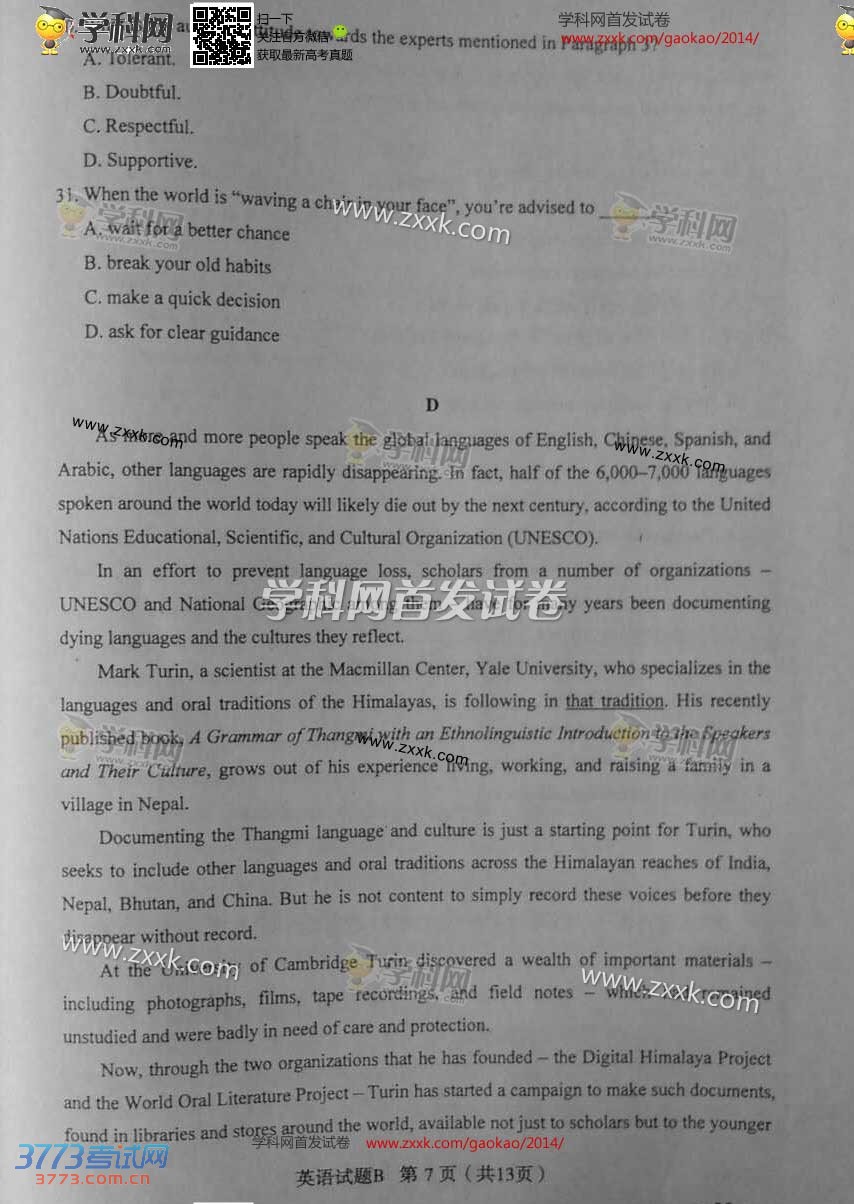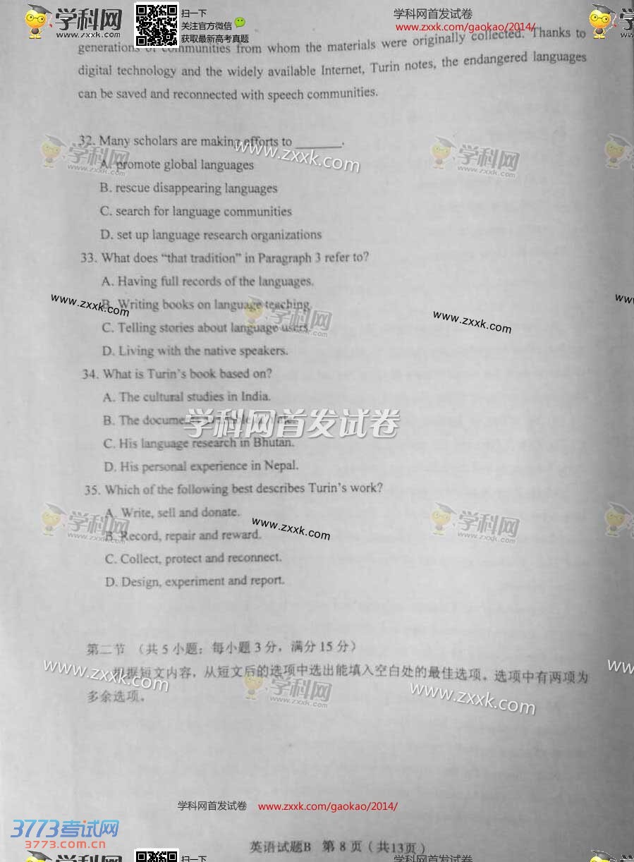 2014山西高考英语试题及答案