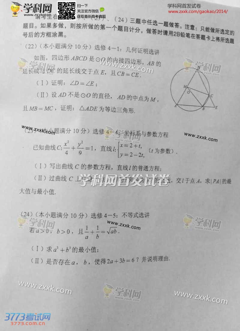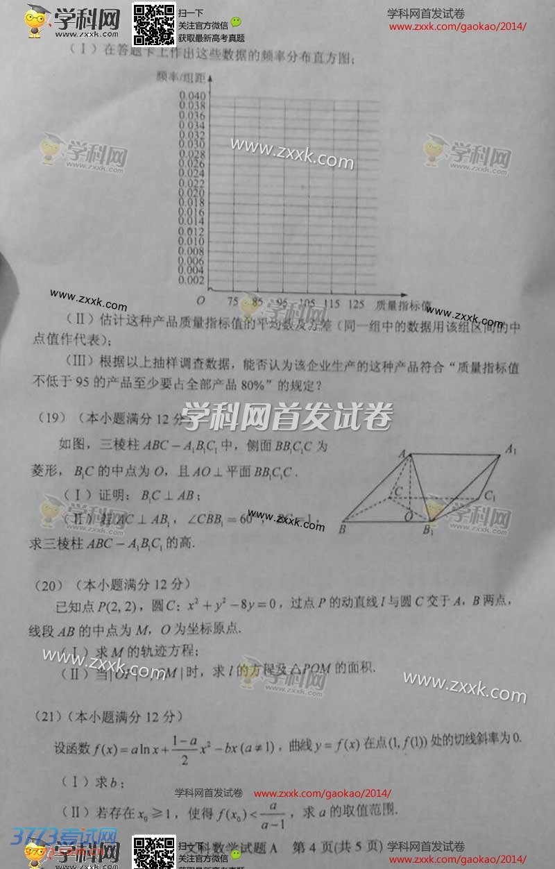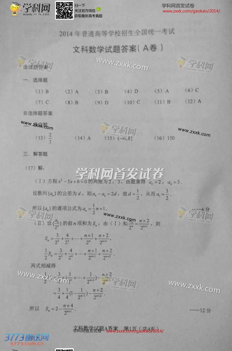 [组图]2014山西高考文科数学试题及答案(新课标1卷)