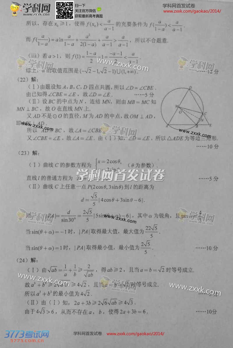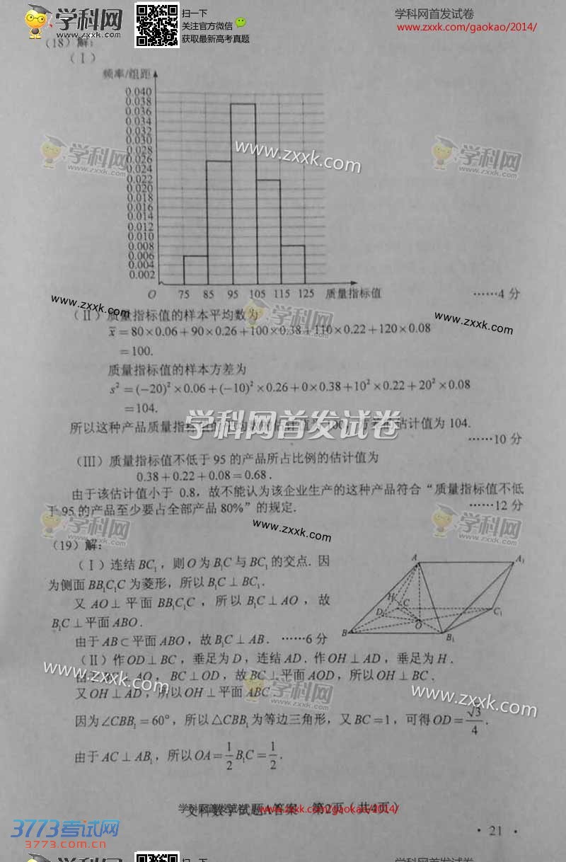 [组图]2014山西高考文科数学试题及答案(新课标1卷)