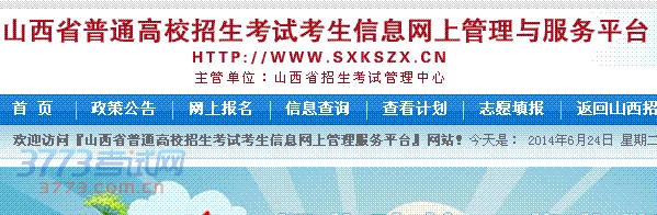 2、考生在网上填报志愿时可直接登录http://gkpt.sxkszx.cn或通过山西招生考试网主页(http://www.sxkszx.cn/)上的“山西省2014年普通高校招生网上填报志愿系统”链接进行登录。切记不要使用搜索引擎来搜索网上填报志愿系统网页,应该在地址栏中直接输入网址。如果使用搜索引擎搜索网上填报志愿系统网页,就有可能误入其他网站,使自己填报的志愿信息无效,并造成考生密码等个人信息泄露的不良后果。
