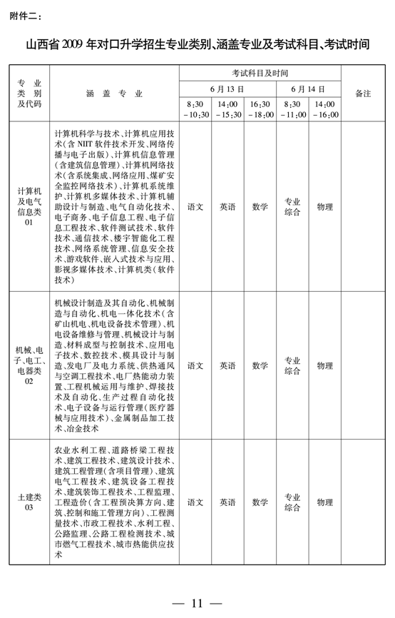 [组图]山西省2009年对口招生专业类别考试科目考试时间等