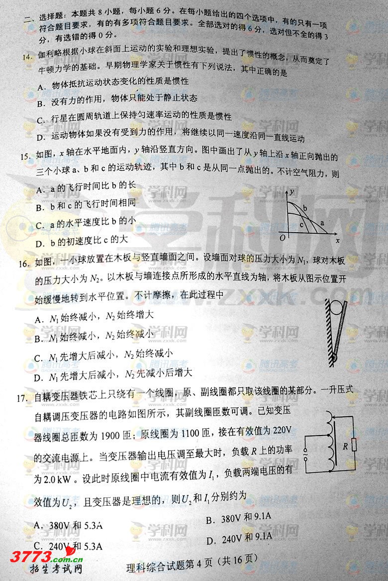 2012年山西高考理综试题试卷发布