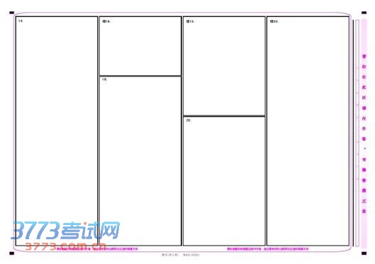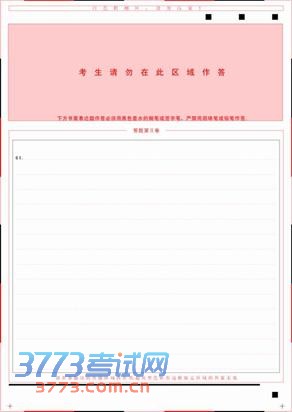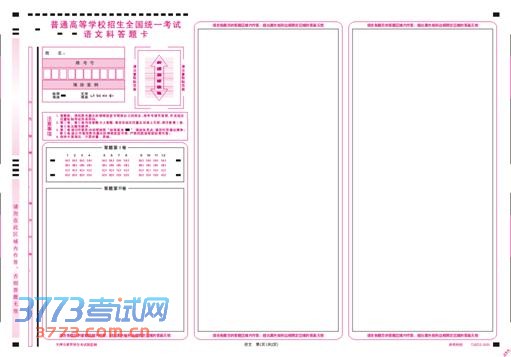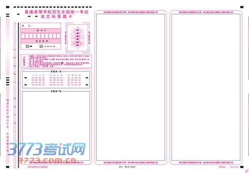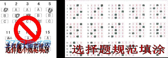 答:高考语文、数学、综合、英语科目均实行网上评卷,各科答题卡样式与市高招办发给考生练习的样卡基本相同,但根据试卷要求,考试时的答题卡会印有相应的题号、答题区域和提示,请考生作答时注意。选择题答案须用2B铅笔填涂,非选择题须用黑色字迹的钢笔或签字笔作答。答题时,考生要在答题卡对应题号指定的区域内答题,不要答错位置或越界作答。如需修改选择题答案,要用橡皮轻擦干净后修改;如需对非选择题答案进行修改,不能用涂改类物品,要用修改符号划去后,紧挨上方或下方写出新的答案,但不能超出该题目的答题区域边框。(填涂示例和各科答题卡基本样式附后)