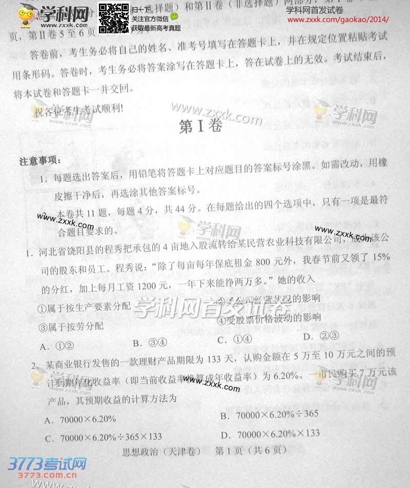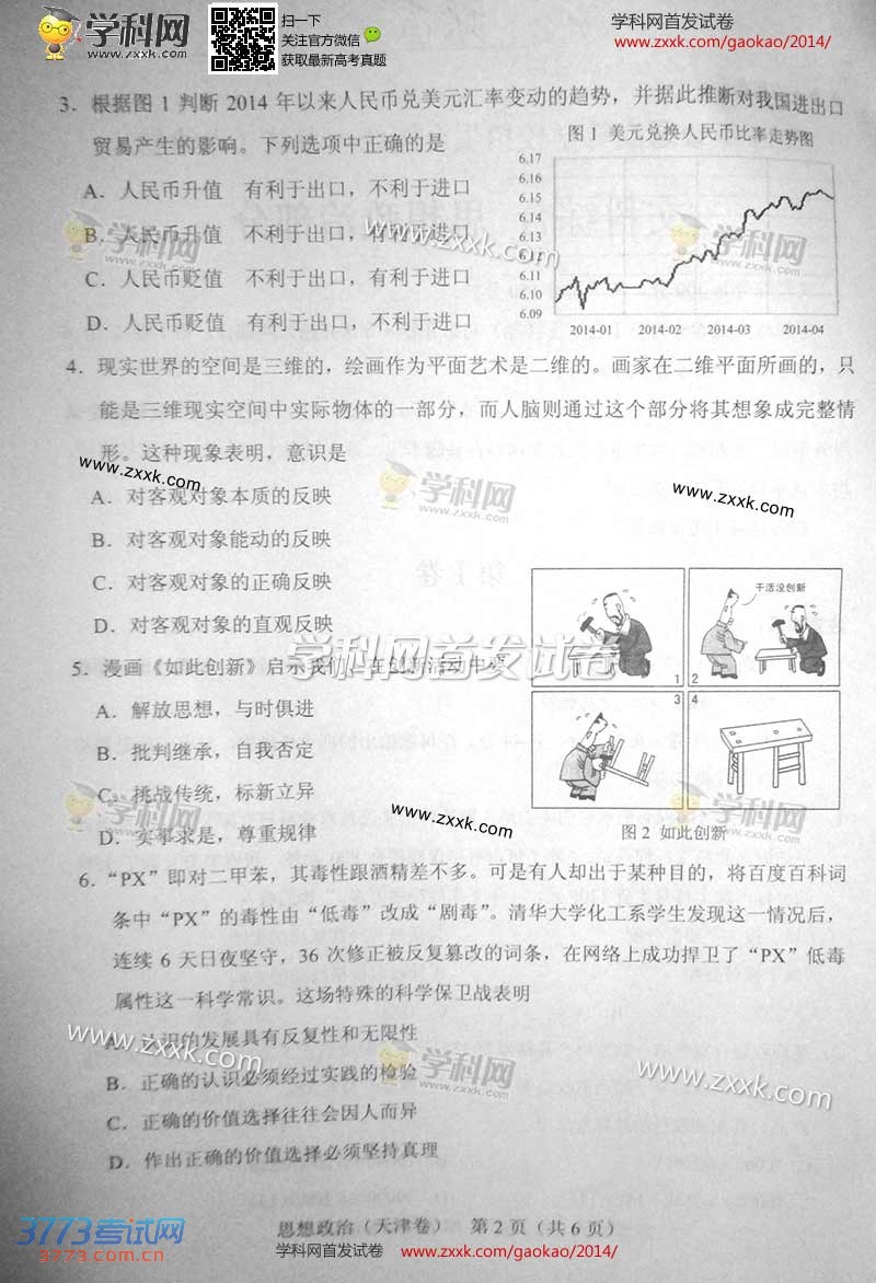 [组图]2014天津高考文综思想政治试题