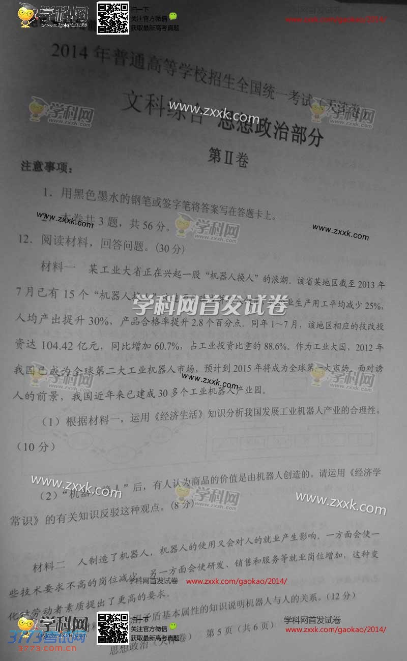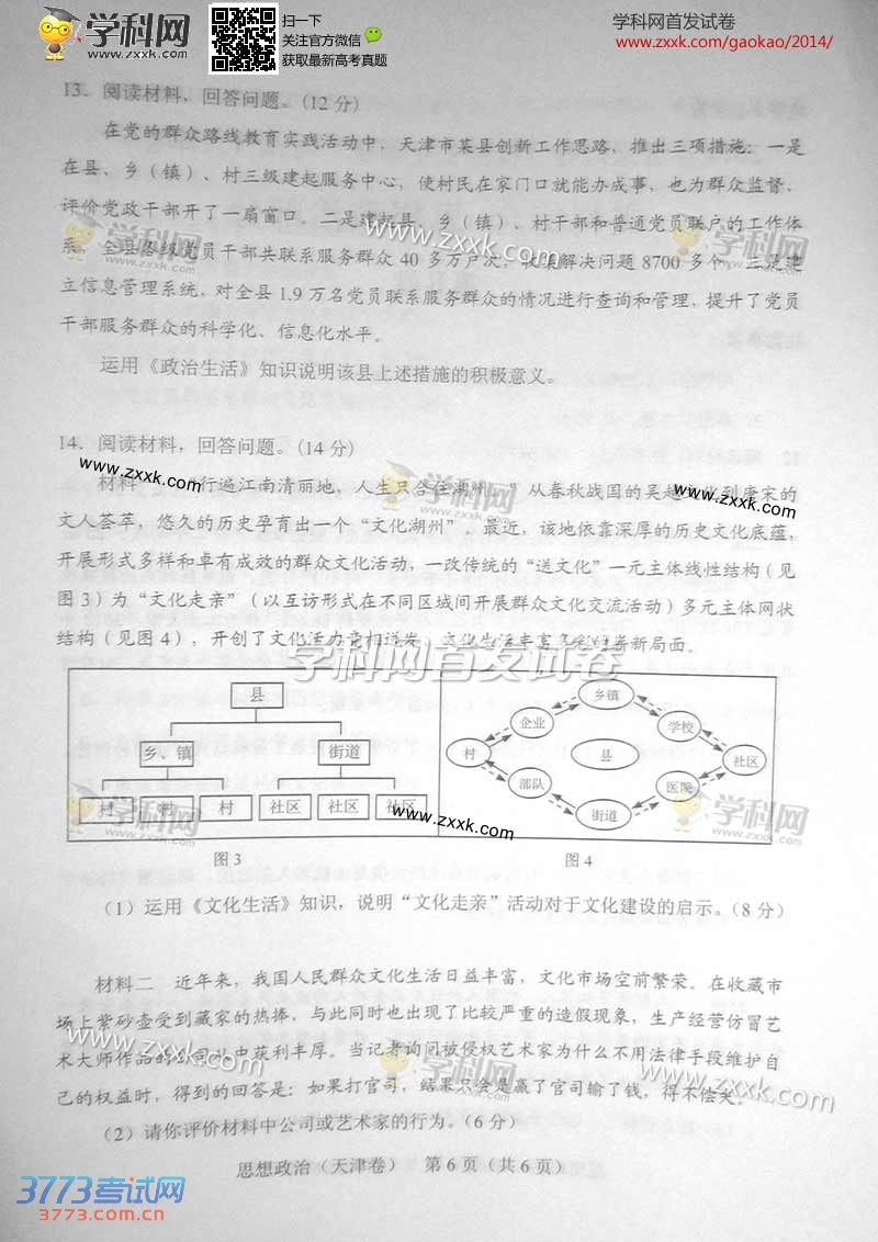 [组图]2014天津高考文综思想政治试题