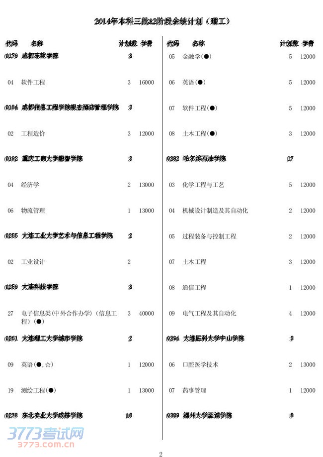 2014年本科三批A2阶段余缺计划(理工)(54所-余缺436).pdf 2014天津高考三本A2理科院校余额计划