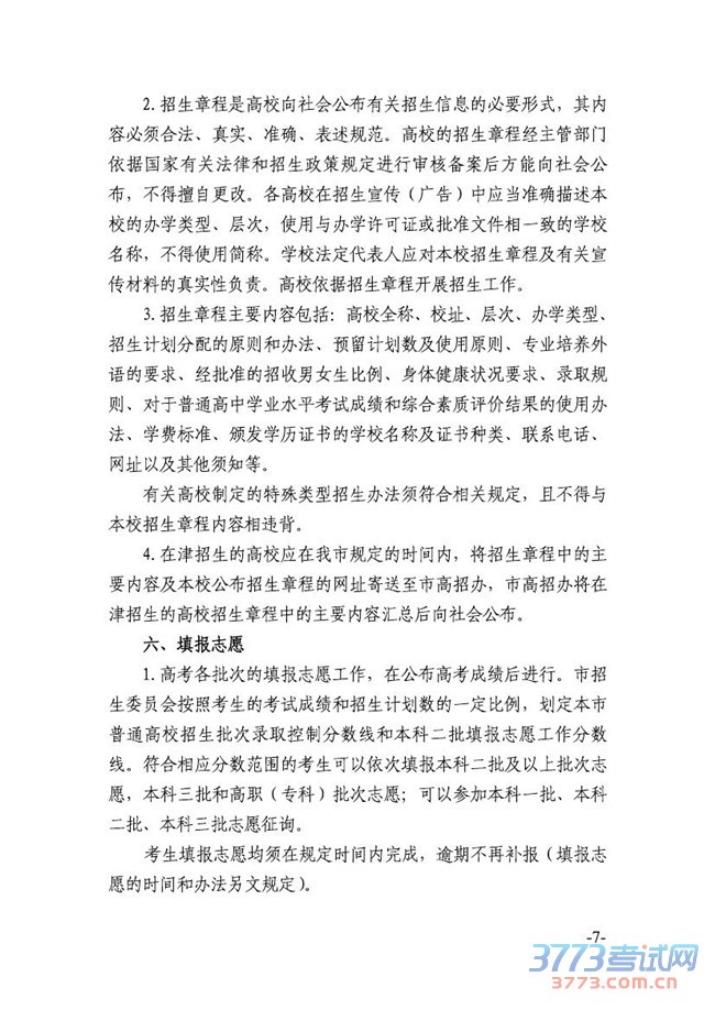 [组图]2015天津高考招生考试工作规定