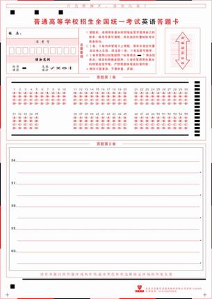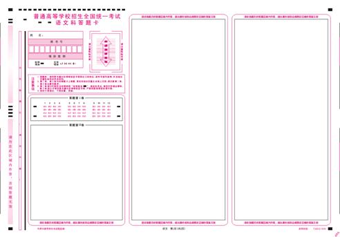 答:高考语文、数学、综合、英语科目均实行网上评卷,各科答题卡样式与市高招办发给考生练习的样卡基本相同,根据实际的具体试题要求做相应微调。考试时的答题卡会印有相应的题号、答题区域和提示,请考生作答时务必注意。(各科答题卡具体样式附后)