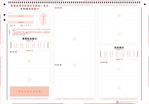 (4)文科综合科目答题卡样式