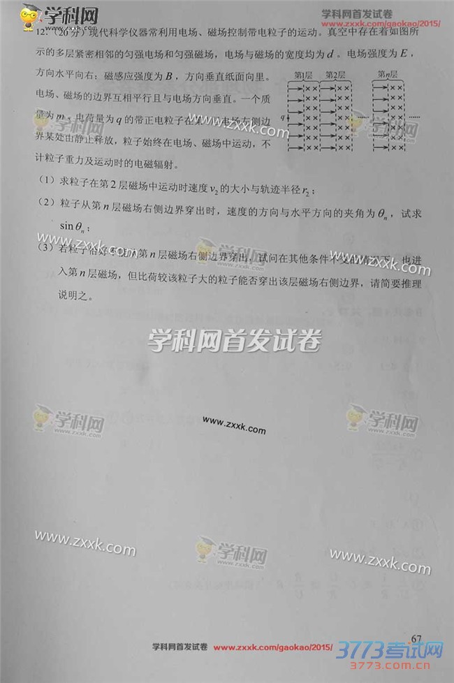 [组图]2015天津高考理综试题及答案