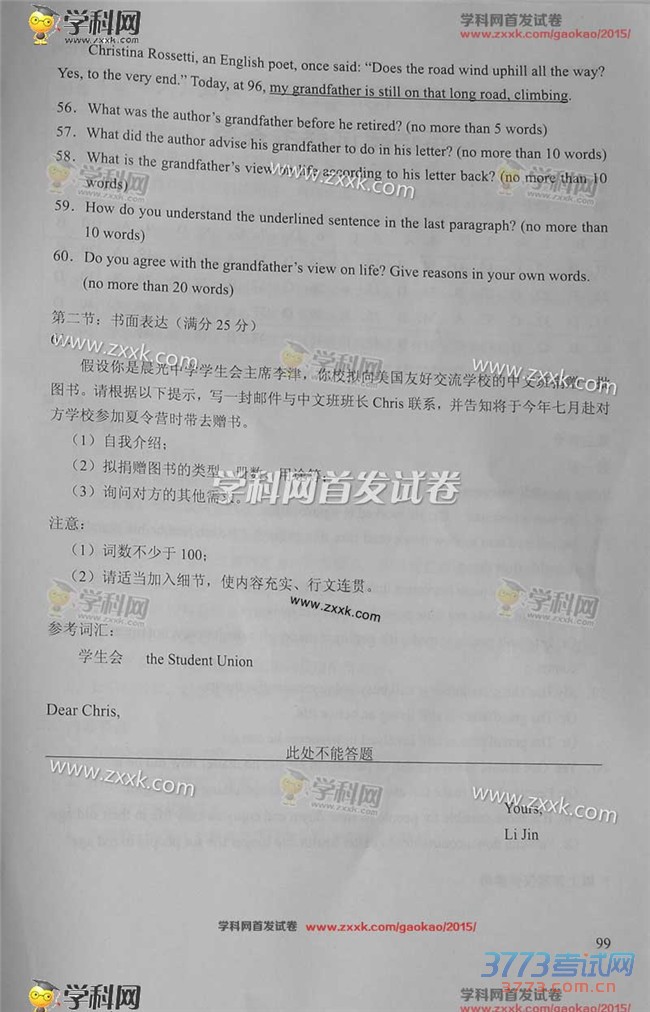 [组图]2015天津高考英语试题及答案