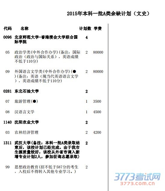 [图文]2015天津高考一本A类征询补录计划(文科)