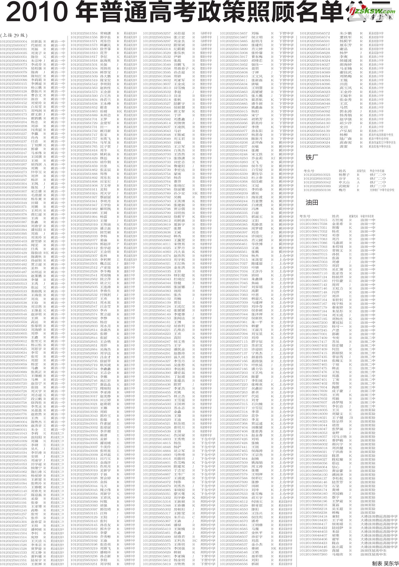[组图]天津各区2010年普通高考政策照顾名单