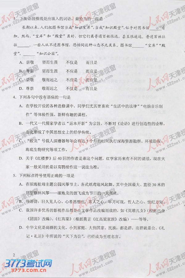 [组图]2013天津高考语文试题试卷