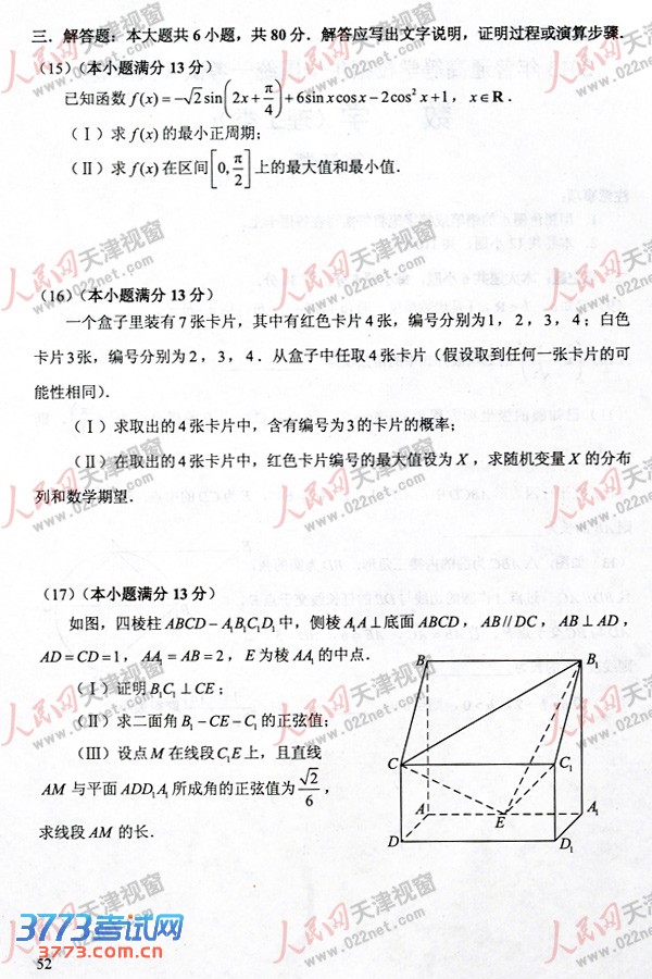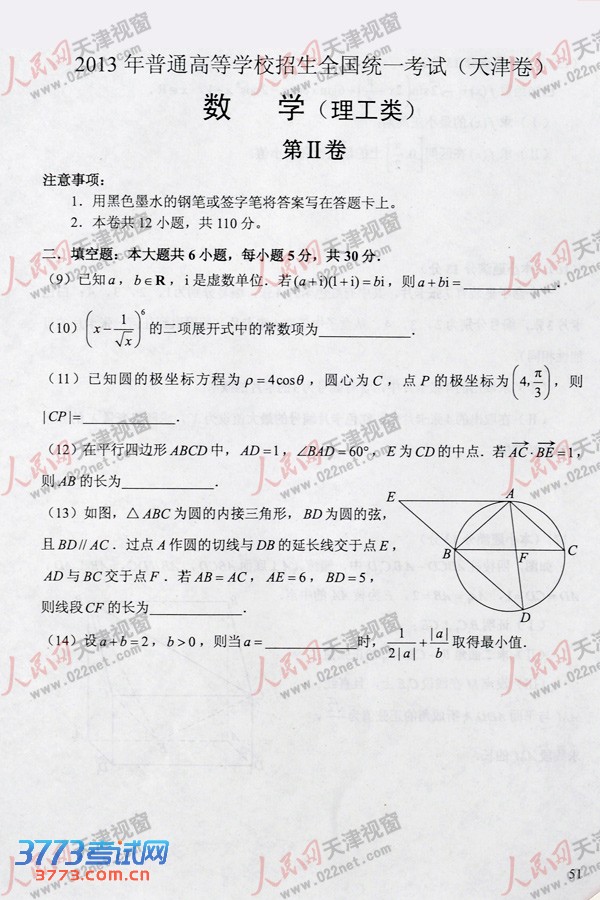 [组图]2013天津高考理科数学试题试卷