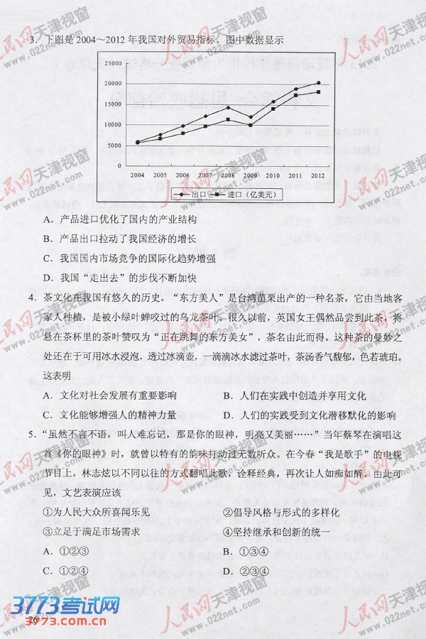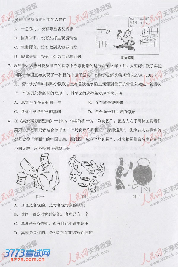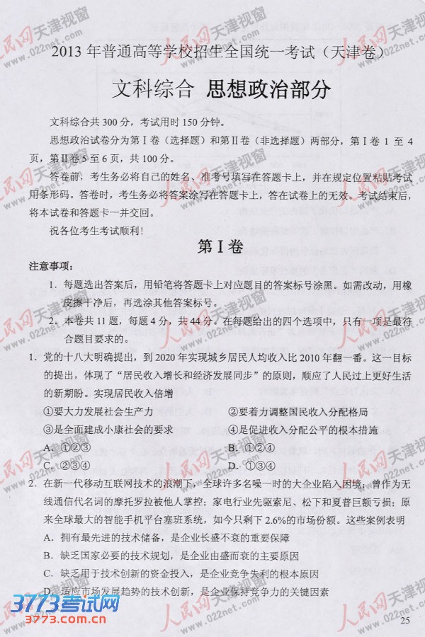 [组图]2013天津高考文综政治试题试卷