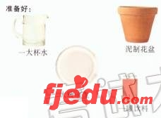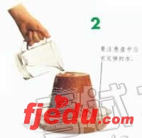 2.用花盆盖住饮料,在花盆上面浇水。要注意盘中应有足够的水。
