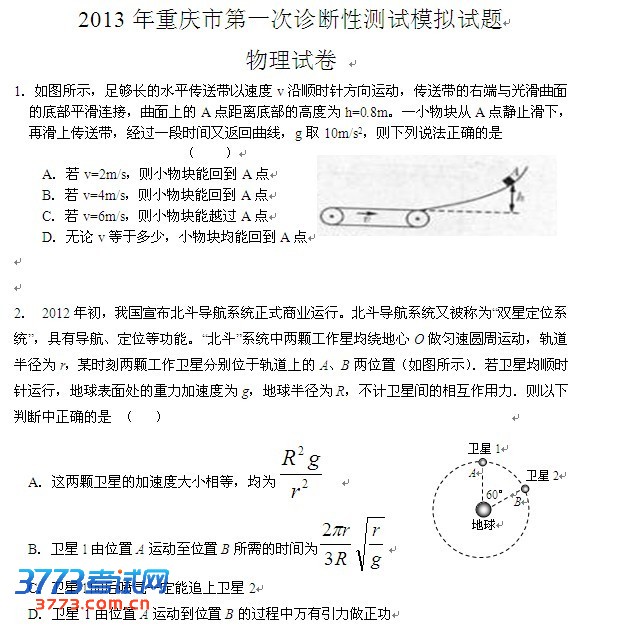 2013年重庆市第一次诊断性测试模拟物理试题:点击免费下载。