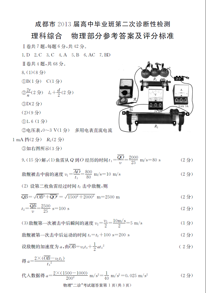 2013成都二诊理综试题答案(word版)   地址:/gaokao/ZH/773729.shtml