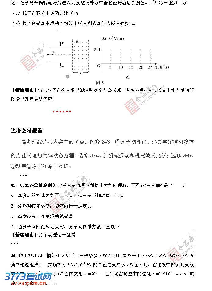 [组图]2013高考试题预测:最有可能考的物理题(附答案)