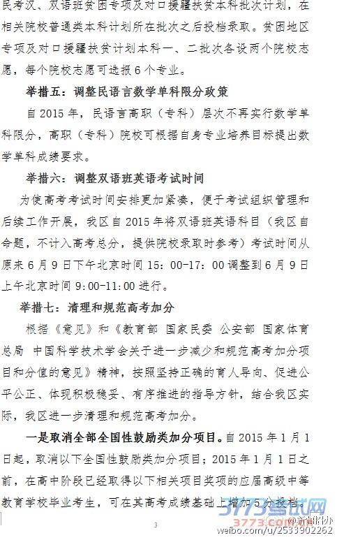#有关高考#【新疆调整双语班英语考试时间】为使高考考试时间安排更加紧凑,便于考试组织管理和后续工作开展,我区自2015年将双语班英语科目(我区自命题,不计入高考总分,提供院校录取时参考)考试时间从原来6月9日下午北京时间15:00-17:00调整到6月9日上午北京时间9:00-11:00进行。