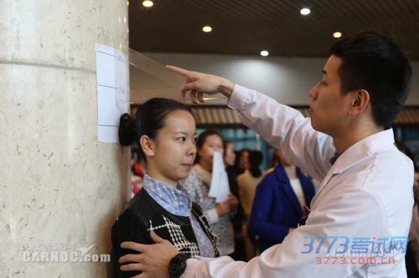 图:南航招收乘务(安全)活动现场,工作人员测量身高。 摄影:冯明远
