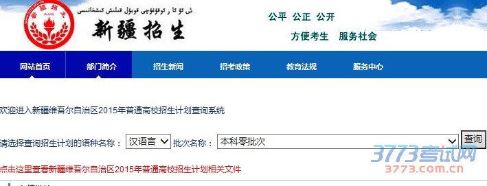 欢迎进入新疆维吾尔自治区2015年普通高校招生计划查询系统