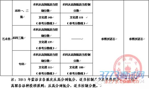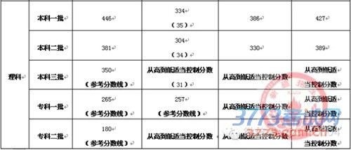 2015年自治区普通高校招生各批次最低投档控制分数线根据“科学、严谨,兼顾招生工作实际”的原则,依据区内外高校在疆招生计划数、考生成绩等因素,参照往年相关批次的录取比例,综合考虑我区今年试题难易度、批次划分情况、实行平行志愿及征集志愿等情况划定。