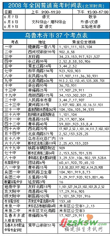 6月5日下午,全市37个考点学校将全部停课,封闭考场。6月6日15时30分至19时(北京时间),参加2008年普通高考的考生可前往各考点,熟悉乘车路线和考场位置。考生本人可在上述规定时间内凭准考证进入考点,可在考场外查看考场示意图和座位位置,但不可进入考场“试座”。6日19时后,考场将完全封闭。