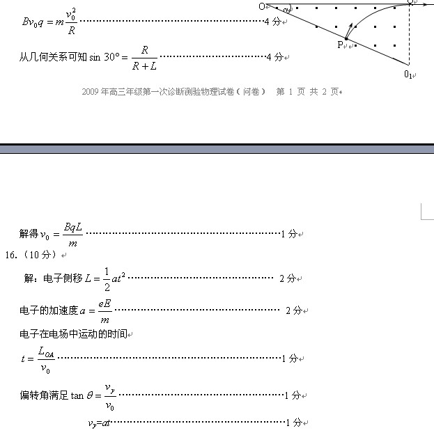 乌鲁木齐地区2009年高三年级第一次诊断测验