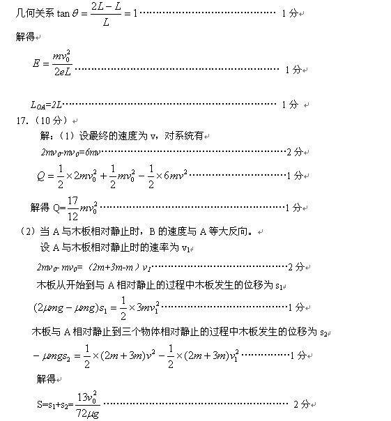 物理试题参考答案和评分标准