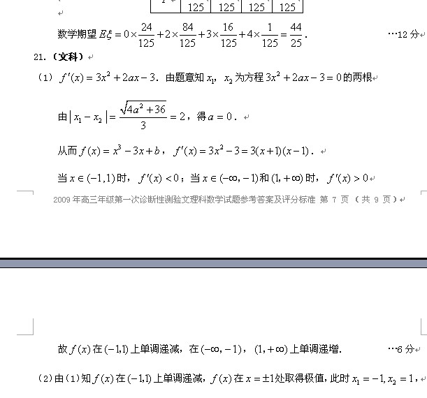 乌鲁木齐地区2009年高三年级第一次诊断性测验