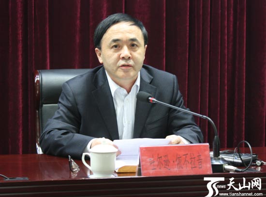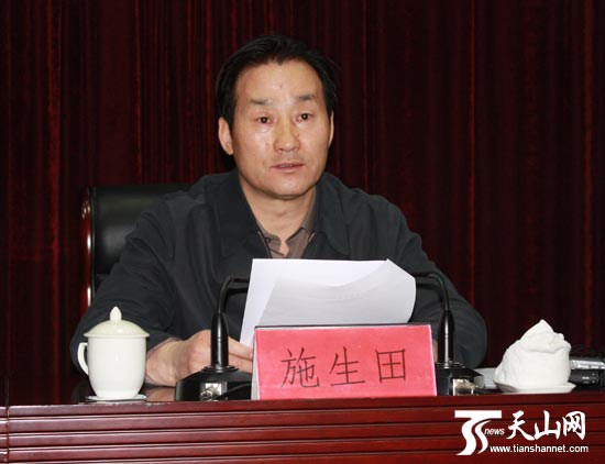 自治区党委宣传部副部长施生田在新闻发布会上讲话。