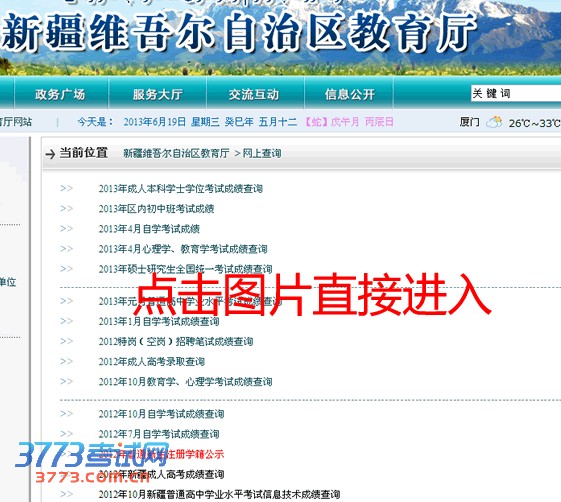 进入新疆招生网查询:http://124.117.250.25/index.htm