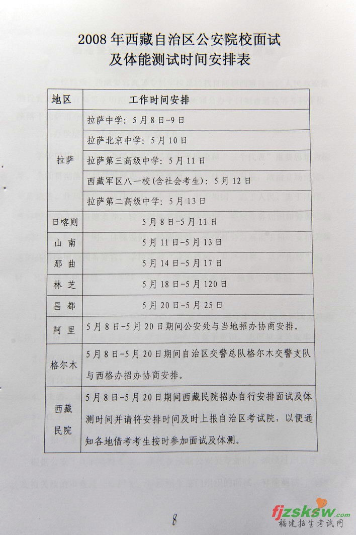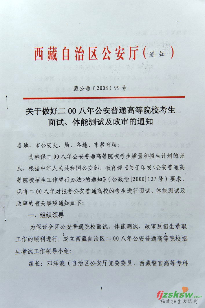 [组图]西藏教育考试院2008年公安高校考生面试、体能测试及政审的通知