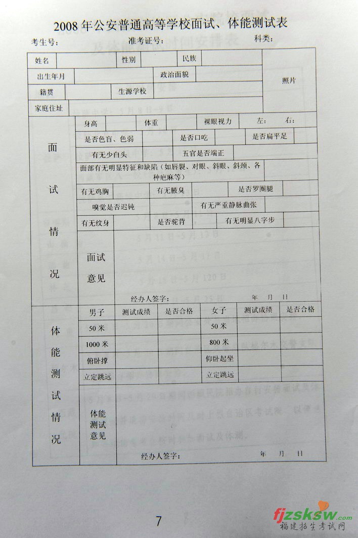 关于做好二○○八年公安普通高等院校考生面试、体能测试及政审的通知