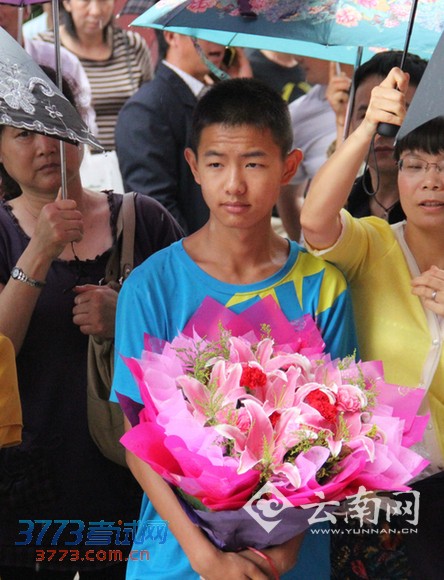 鲜花送考生。云南网 念新洪 摄