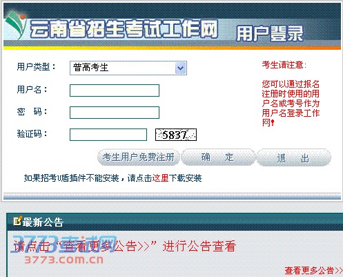 云南省招生考试工作网2014云南高考填报志愿入口 :http://work.ynzs.cn/ZSGL/Login.jsp