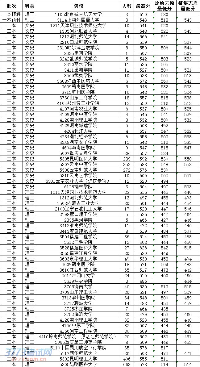 [图文]2014年7月30日云南高考录取分数线日报