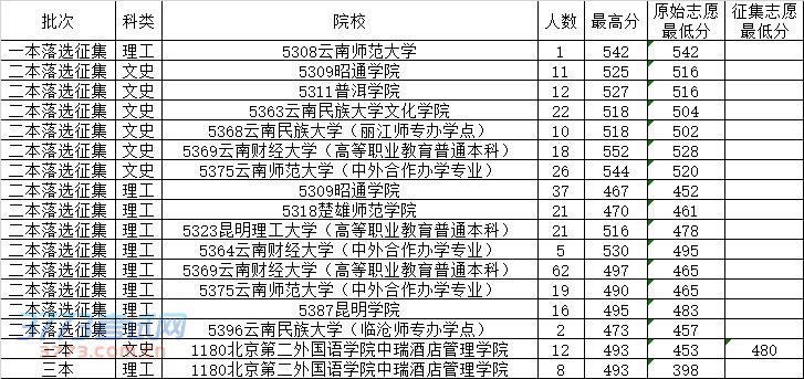 [图文]2014年8月8日云南高考录取分数线日报