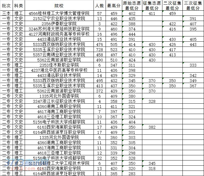 [图文]2014年8月21日云南高考录取分数线日报
